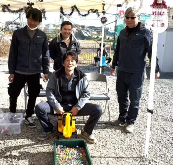 今年は沖田土木グループが支援している「移動式こども食堂キッチンカー「みんなのこしガーヤ号」にお越しいただき、カレー・豚汁・フランクフルト・ポップコーンを振る舞いました。